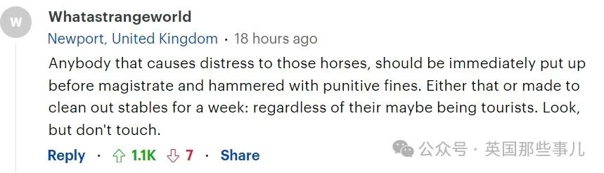 “任何对马匹造成困扰的人都应该立刻被带到地方法官面前并处以惩戒性罚款。要么这样做,要么让他打扫马厩一周:不管他们是不是游客。可以看,不能摸。”