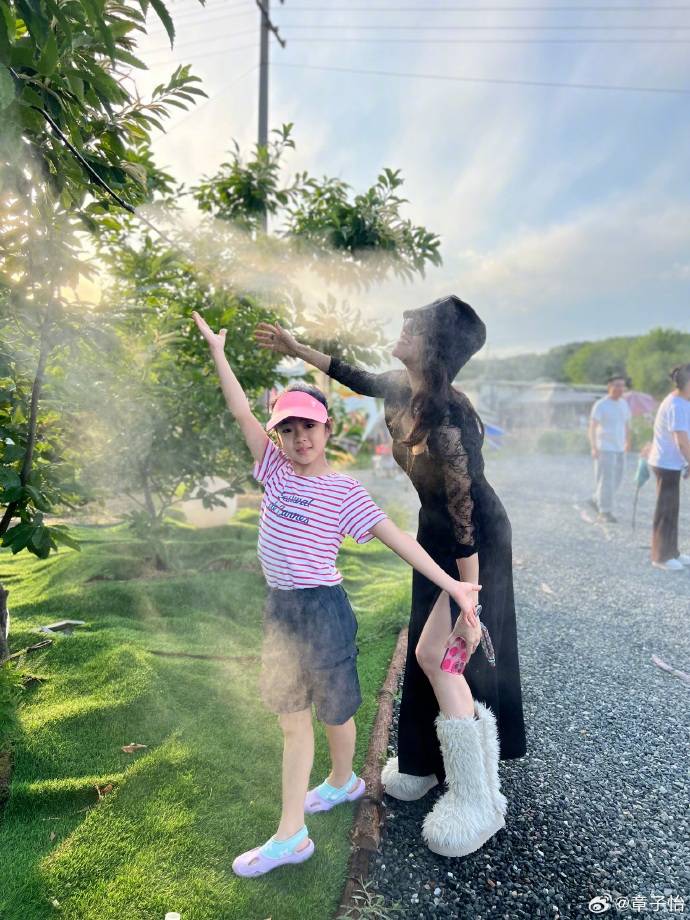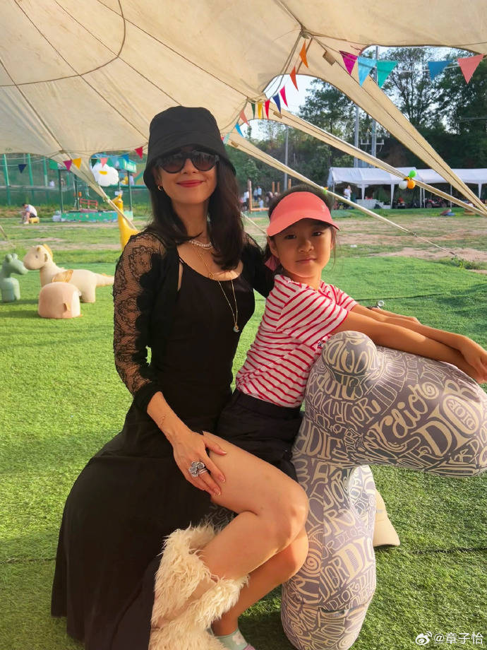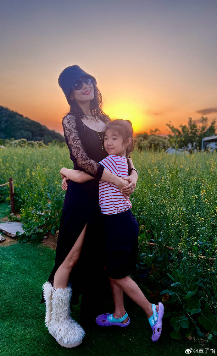 母女兩人坐在玩偶上的時候,章子怡的美更是被展現得淋漓盡致,在夕陽的照射下,配上大邊框眼鏡看起來充滿了青春的味道,尤其是單手放在大腿上的那壹刻,簡直是“人間尤物”。