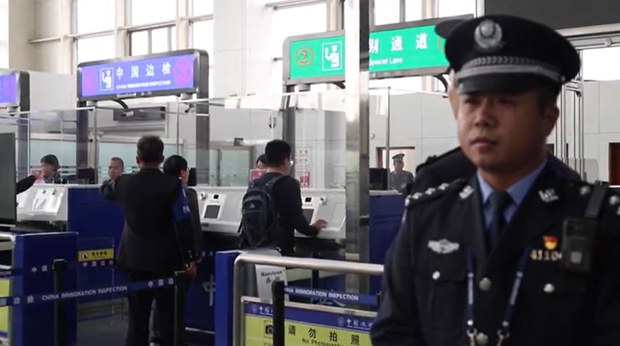 图为中国兰州的边防检查站。有报道称,中国政府一再收紧对公职人员和国有部门员工的出境管控。 路透社视频截图