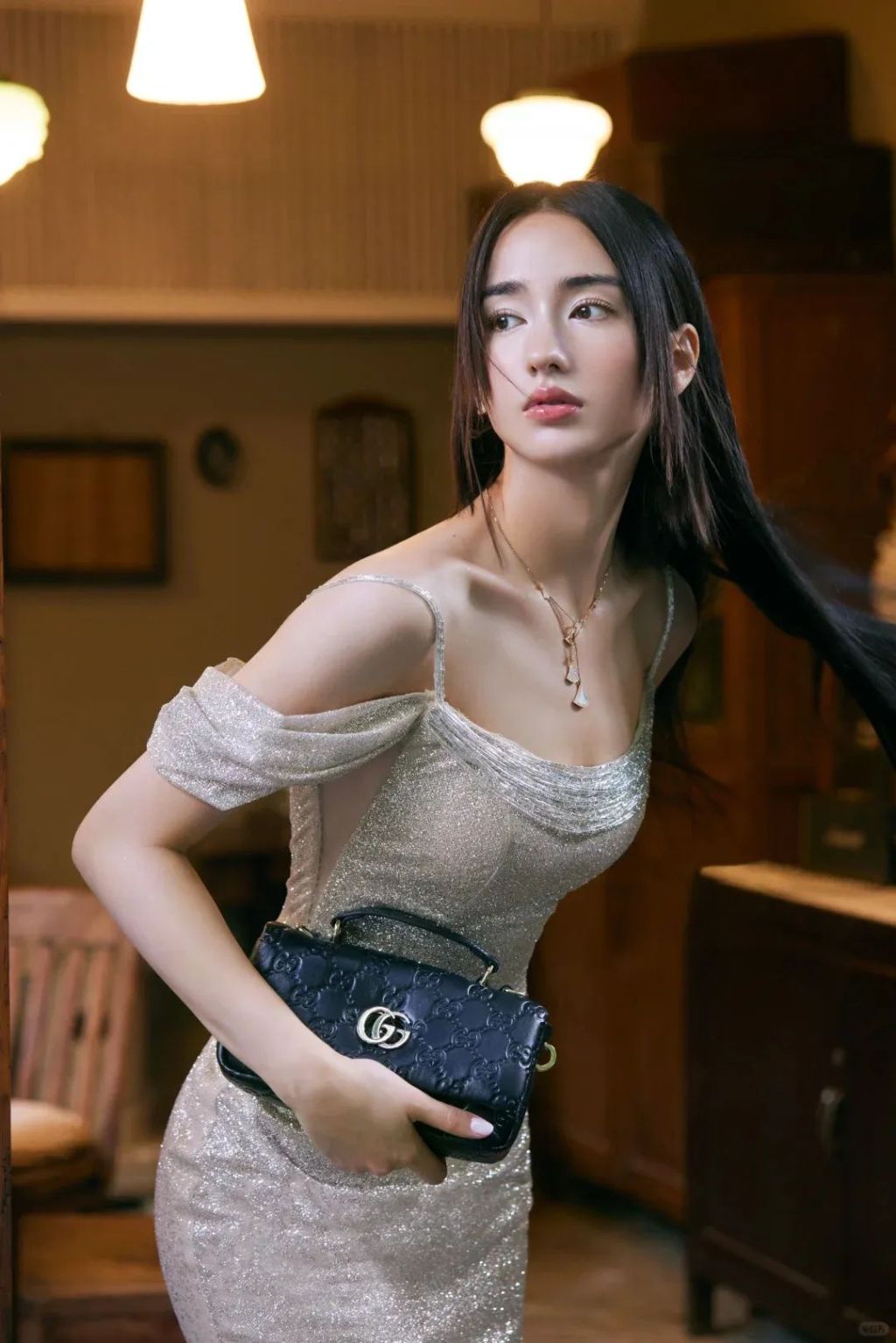 烏發紅唇,眉宇間自帶英氣,很有幾分早年香港女星的feel~