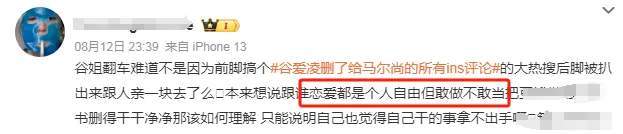 刪評往往是無能為力的表現,谷愛凌寧可刪評被質疑心虛,都不願意正面回應戀情,相當於默認了。而且,她不光管理自己的評論區,還被質疑公關了國內各個平台,引發網友逆反,被嘲“敢做不敢當”,恐怕是自己也覺得這段戀情拿不出手。