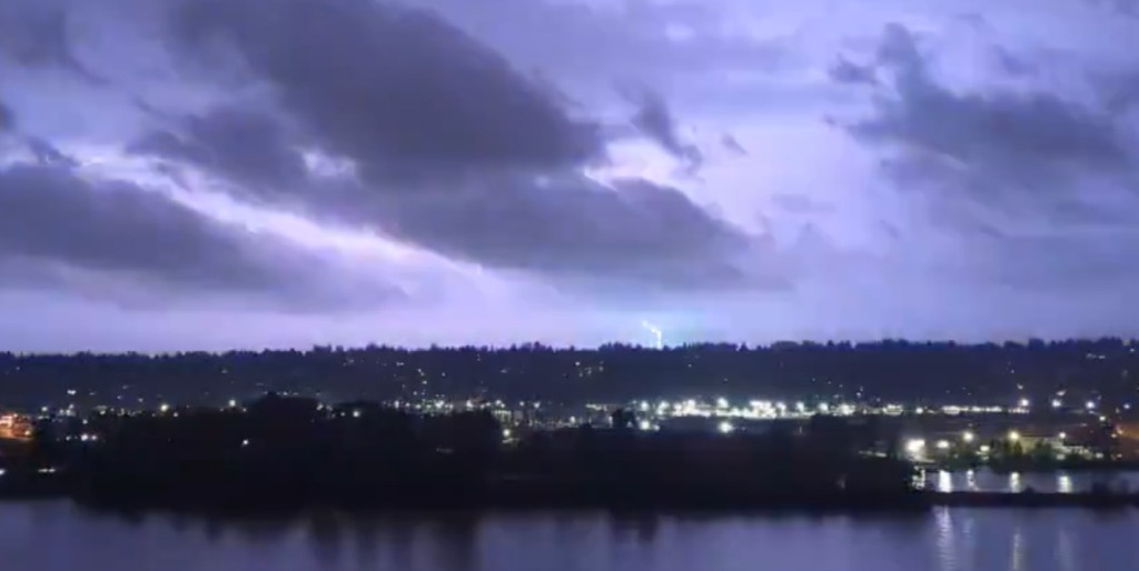 周日下午晚些时候至晚上,温哥华岛南部将出现更多雷暴活动。这些风暴可能包含频繁的闪电、阵风和倾盆大雨。预报员不能排除一场或两场风暴达到严重程度的可能性。