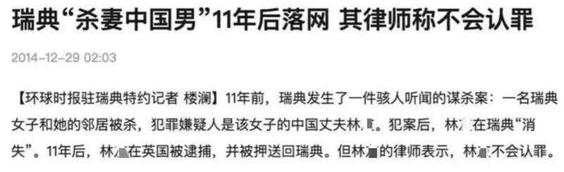 就在所有人都以为这个案件会成世纪悬案时,案发地瑞典的媒体近日曝出,嫌疑人林某已在中国国内落网的消息。