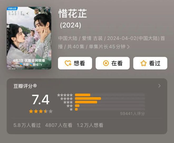 作為今年上半年優酷破萬劇之壹,《惜花芷》是其中關注度最低的壹部。