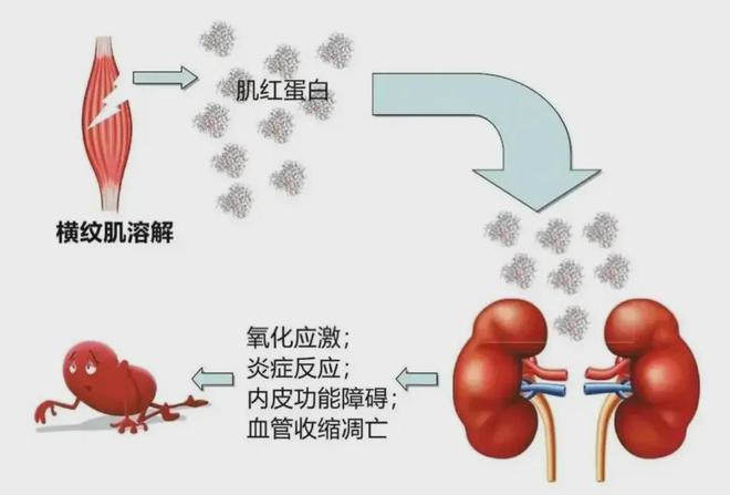 此時肌肉細胞釋放出壹些有害物質,進入血液流通,導致器官損傷。