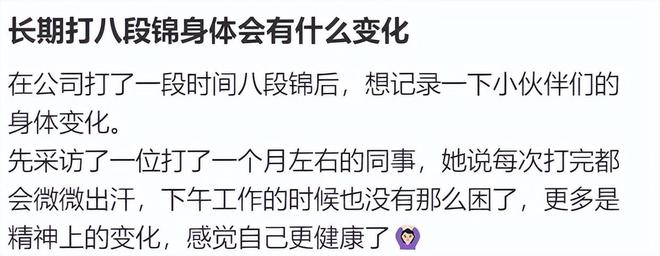 而且,練習八段錦時,動作緩慢、節奏平和,能讓人感受到放松的效果,幫助減輕工作帶來的壓力與焦慮。