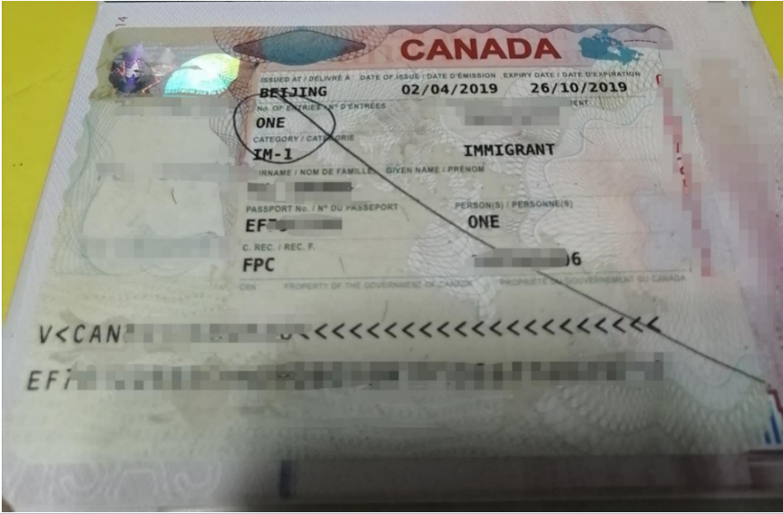 2019年4月2號成功貼移民簽(有效期到體檢日期後的壹年)。