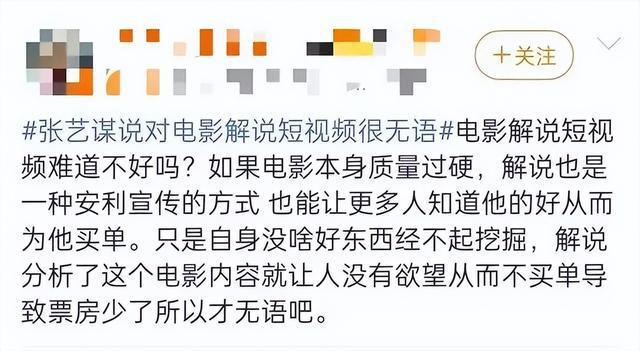 對此張藝謀導演也是做出了評價:很無語,建議最好別看短視頻電影解說。