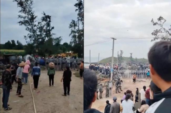 此外,据最新报导,12月3日,广东湛江承梧村村民与当局出动的大批全副武装的武警、特警展开一场“水战”。