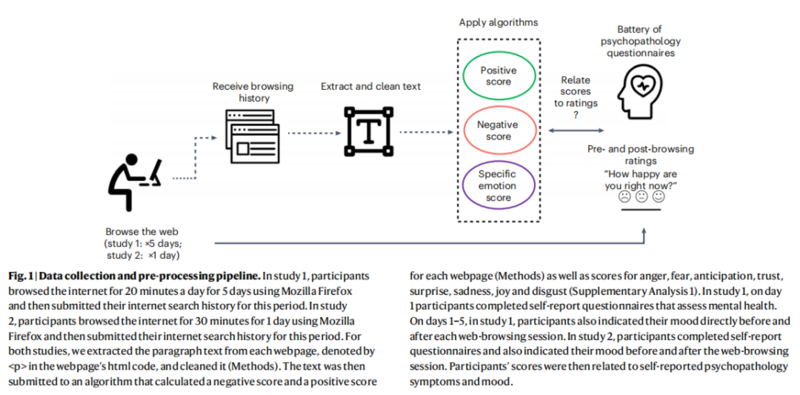 第壹個研究中,287名參與者每天瀏覽互聯網20分鍾,持續5天,並向研究者提交歷史記錄,再完成壹份心理健康評估問卷。每天上網之前和之後,他們還要直接表明他們的情緒。