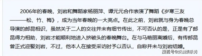 一开始大家都以为这是刘岩凭借自己的努力得来的,但当她爆出与朗昆的恋情,才得知刘岩之所以能够上春晚,正是有了郎昆得力相助。