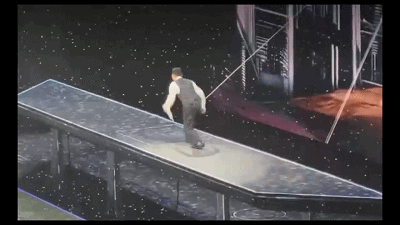 畫面可見,他於大概叁米高的升降台上表演,按照安排,他要跑向升降台的邊緣。