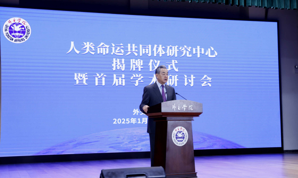 1月2号,人类命运共同体研究中心揭牌仪式在北京举行。中国外交部长王毅为研究中心揭牌并致辞。王毅强调,构建人类命运共同体,是习总书记提出的重大原创性思想,是习近平外交思想的核心理念,是对“建设一个什么样的世界、如何建设这个世界这一时代课题给出的中国答案,具有重大时代意义和深远世界影响。