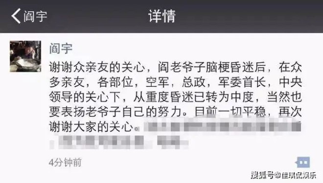 但随后,阎肃家人便出来辟谣,表示他暂时没事,已由重度昏迷转为中度。