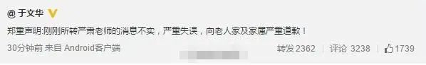 而于文华也出来致歉,表示是自己弄错了。