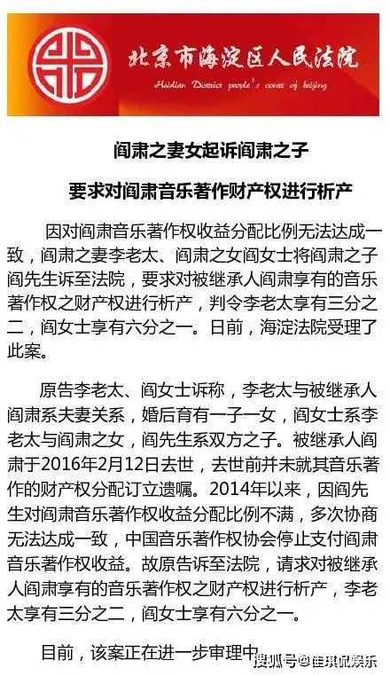 国家一级编剧阎肃去世3年后 遗孀和儿就对簿公堂