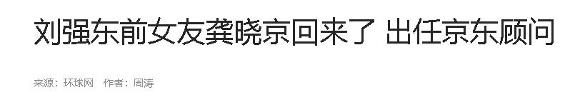 来源:环球网 ——刘强东前女友龚晓京回来了 出任京东顾问