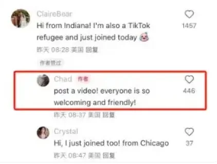 △壹名美國網友向剛“登錄”的“TikTok難民”傳遞心得:發個視頻吧,這裡的每個人都熱情友好!