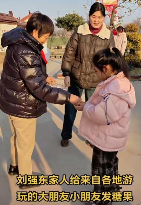 刘家还给门口玩耍的孩子们发糖吃。