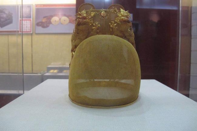 圖為明定陵地宮出土的金絲翼善冠。(中時資料照,焦捷攝)