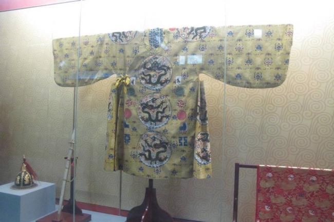 圖為明定陵地宮出土的皇袍。(中時資料照,焦捷攝)