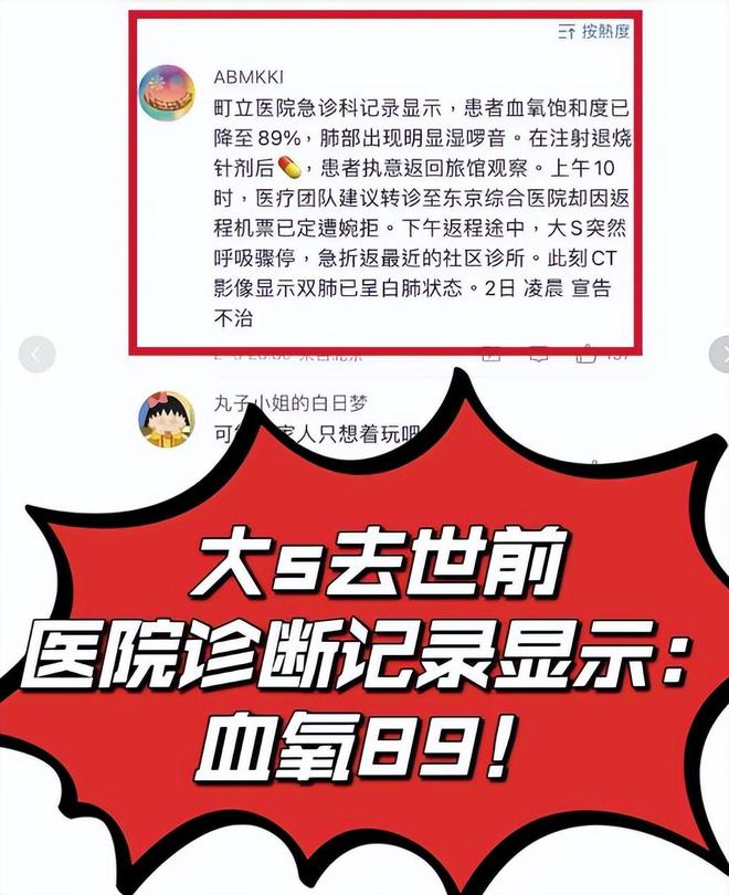 急诊报告则提到大S在抢救之前,血氧饱和度已经下降到了89%,肺部出现了明显的湿啰音。
