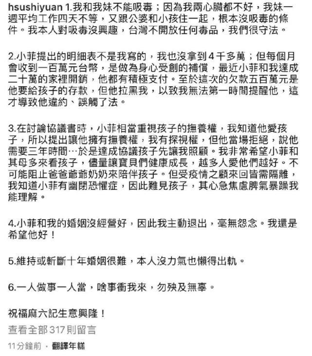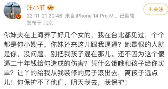 不止如此,汪小菲公開指責小S老公養了很多小叁,小S只能忍辱負重。