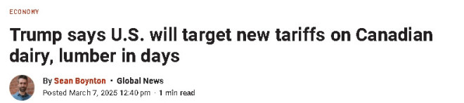 [关税] 突发:川普宣布对加国乳制品和木材征新关税