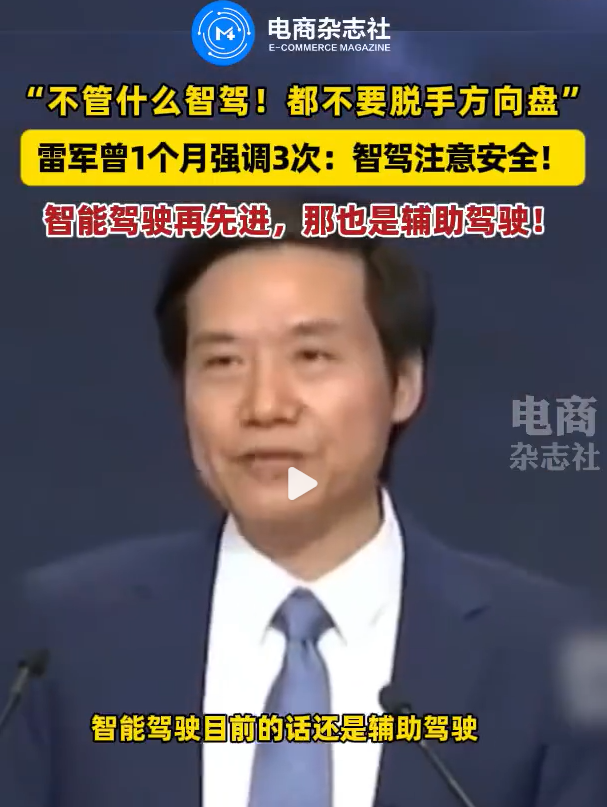 “智能駕駛無論多麼先進,都是輔助駕駛。不管在使用我們的,還是哪壹家的都要注意安全駕駛,都不要脫手方向盤,駕駛員要盯著路面,手扶方向盤,隨時准備接管。我也倡議大家壹定要宣傳,在智能駕駛中的安全駕駛。”