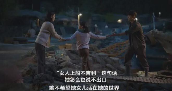 當金明要上船時,即便受過高中教育的愛純也會下意識拉住女兒,不敢上寬植的船。
