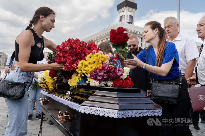 罗什奇娜工作伙伴为她在独立广场举行的简短告别仪式,逾百人出席送别并献花致意。中央社记者陈彦婷基辅摄 114年8月9日
