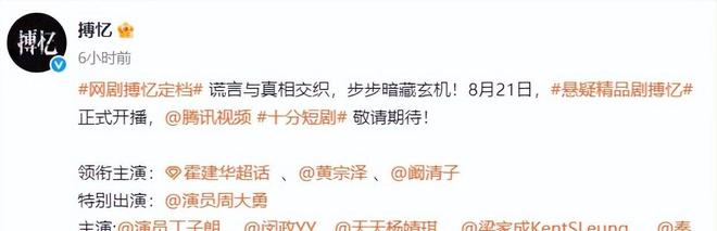 而就在剛剛,又有壹部懸疑劇官宣定檔,即將在8月21日播出。