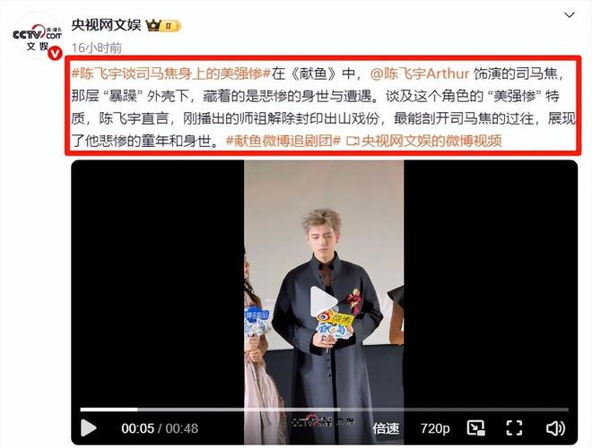 所以,才会出现央视网文娱都在夸的场面,央视网不仅艾特了陈飞宇,还对他的角色进行了深刻分析,并附了一段他接受采访的视频,看得出来,是对这个演员非常的捧了。