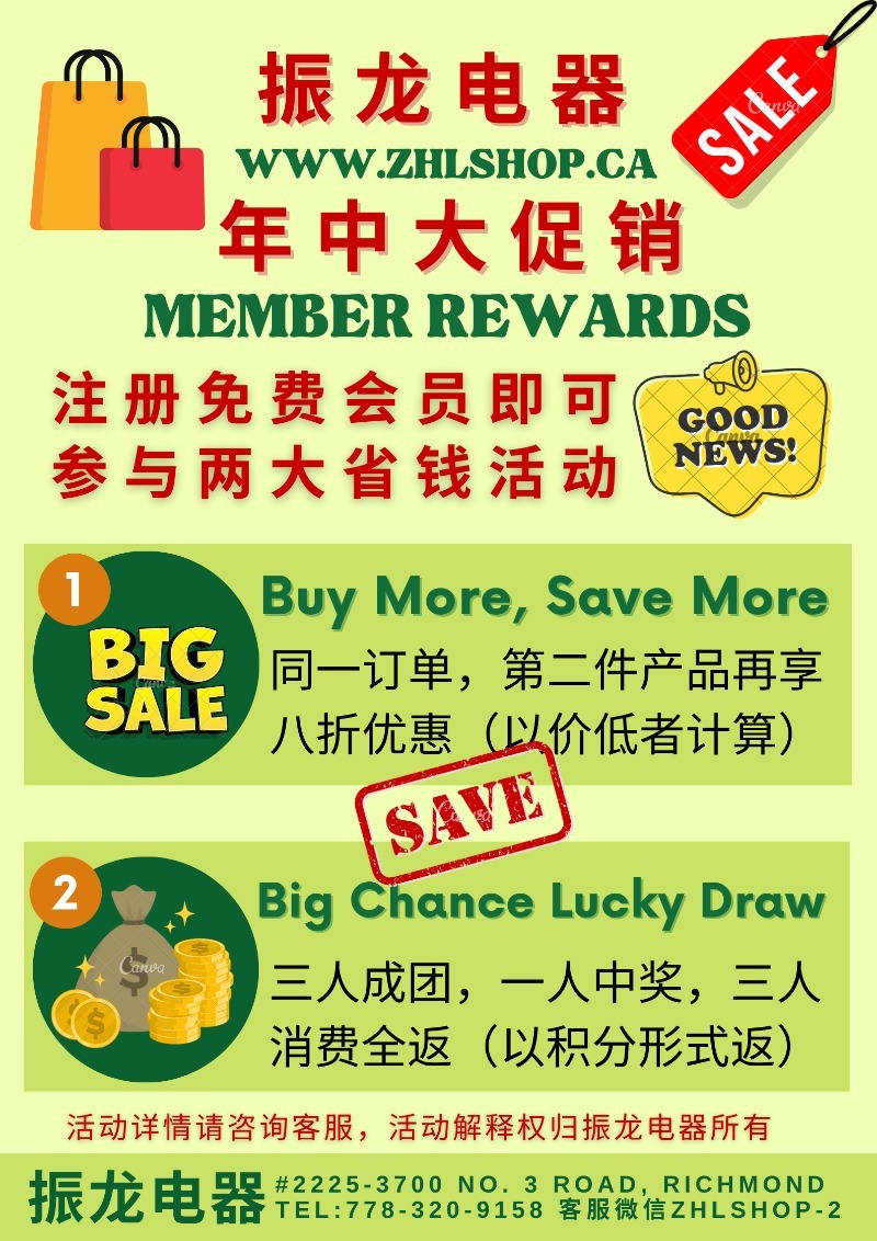 欢迎大家关注 列治文振龙电器小红书号@2632855814 新品发布和促销信息