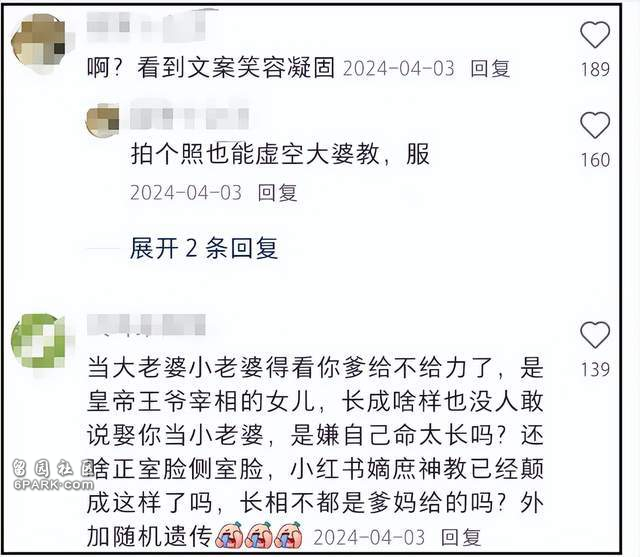 不過,這些文案雖然處處透露著“人間清醒”,但卻遭到不少吐槽。尤其是用黃曉明、汪小菲等人作為例子,更讓人覺得格局太小。而在另外壹條感悟中,她還強調“正宮”“贰婚”這些字眼,更被吐槽婚姻觀念太落伍,不值得提倡。