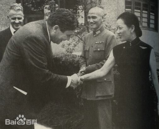 1942年,访问重庆的威尔基与宋美龄握手。 (图/翻摄自百度百科)