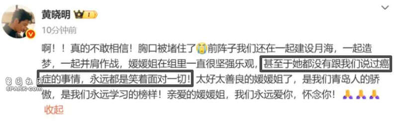 确诊后不卖惨,不在剧组要求特权,就连最后和朱媛媛合作的黄晓明,都不知道她当时正在抗癌。