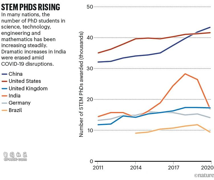 在许多国家,科学、技术、工程和数学(STEM)领域的博士人数一直在稳步增加。