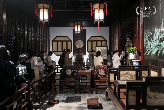 之後,榮府上下聚在壹起看小武生表演《夜奔》的那場戲,就在留園的鎮園之寶冠雲峰對面的池北庭院中拍攝。楊凡表示,“留園在明朝修建起來的時候是有戲台的——過去大戶人家的宅院裡都會建有戲台,但後來毀於戰火,於是我們就找了今天安排座位放映電影的這塊地方,來拍這場戲。”雖然拍攝時間很短,但他顯然已對留園的前世今生了如指掌。他拍攝武生表演的場地,正是留園前身寒碧山莊建造時原本的戲台所在地;盛宣懷之父盛康重修留園時,沒有再建戲台;解放後留園大修,也因未能找到最初的圖紙,只好放棄戲台的修舊如舊。