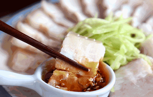 “正宗白肉”是指炖熟的五花肉切成的薄肉片,因其嫩白如玉,醇香如脂,故名“白肉”。