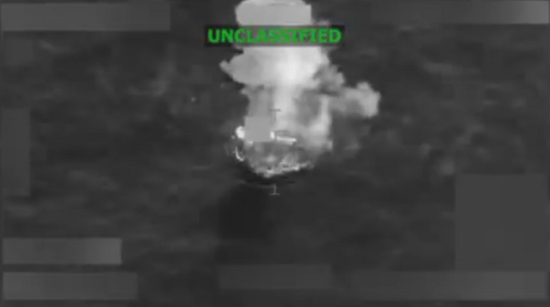 美国战争部长赫格塞斯在X平台PO出美军空袭运毒船影片。(撷取自X平台 @SecWar)