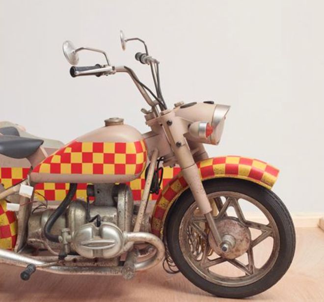 展览中展示的微型摩托车道具(狐狸先生座驾),Arch Model工作室制作,电影《了不起的狐狸爸爸》。摄影:理查德·朗-特纳。