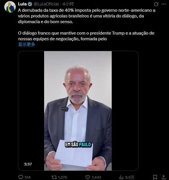 “这是朝着正确方向迈出的一步,但我们需要更进一步,”卢拉表示,“我们将以维护主权和巴西工人、农业和工业的利益为指导,继续与特朗普总统进行对话。”