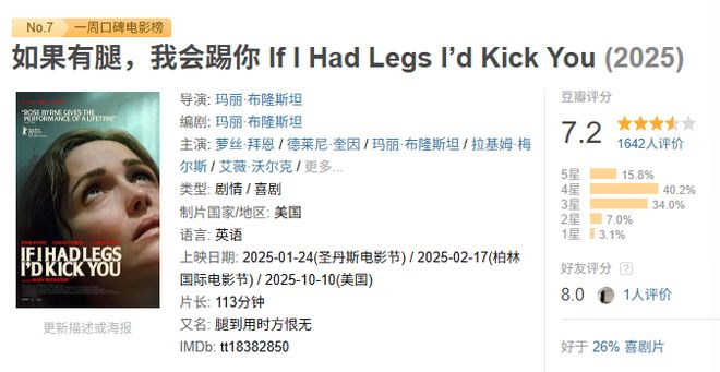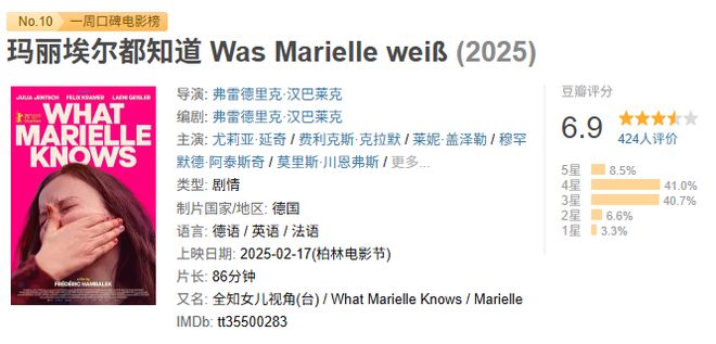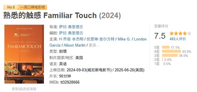 同时,一周豆瓣口碑榜也可以了解下。我们一起来看,这一周,又有哪些新的影片上榜吧。
