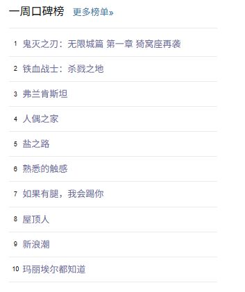 最后,还是例行附上一周豆瓣口碑榜的完整榜单: