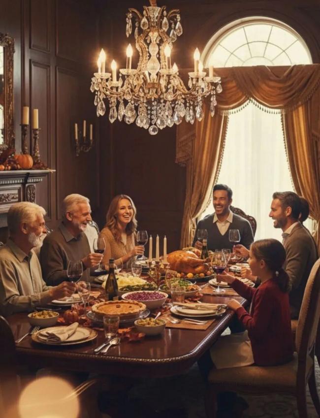 再亲密的家庭也有裂缝:误解、忙碌、疏远、以及所有未曾说出的顾虑和遗憾。而感恩节却好似一台柔和的修复机,低声地、耐心地把这些裂缝的边缘重新对齐。感恩节聚餐提供了一个允许脆弱的场域:餐桌的相聚为交流和理解创造机会 —— 我们用共享的记忆铺垫谈话,用自然的笑容突破边界,用重复的家庭传统重建信任。最关键的是,感恩节让回归成为可以被期待的仪式。在餐桌的分享与交流间,家人互换着过去一年的美好片段 —— 孩子的笑声、父母的关心以及分享带来的欣慰。修复并不总是高声的和解,有时候是一句被认真倾听的抱怨,一次无声的递杯。感恩节教会我们,真正的修复不是抹去伤痕,而是让伤痕修修复为记忆 —— 既脆弱又坚韧,既痛楚又温暖。它证明家不是完美的天堂,而是持续被爱缝合的工坊。