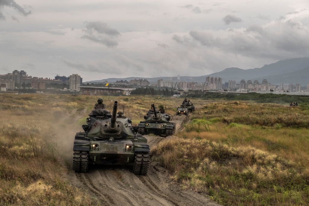 2023年台湾军队在八里区演习。赖清德政府提议明年将军费开支提高到台湾经济产出的3.3%。