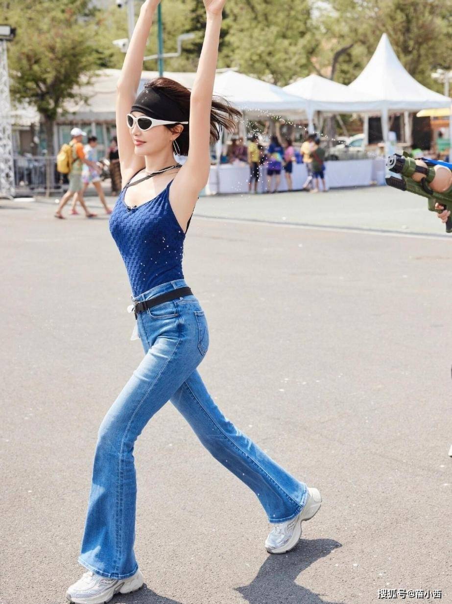 [秦岚] 46岁秦岚的湿身照曝光!好身材穿吊带+紧身裤玩水
