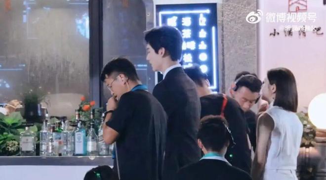 周柯宇一身笔挺黑西装牵着陈妍希的手