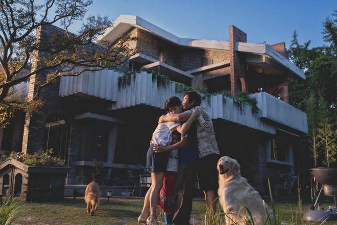 一家人在大house面前幸福合影,房地产广告的绝佳示范。(图/《无可奈何》)